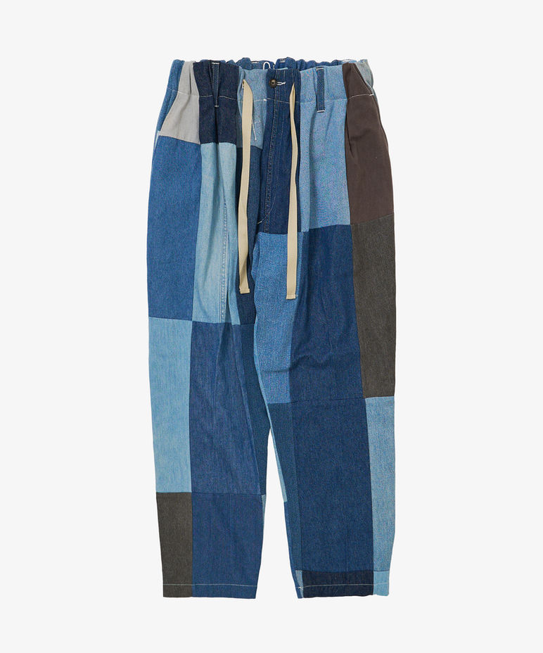 スーパーワイドなウエストを2タックとウエストゴムやドローコードでイージーパンツ仕様にし、裾にかけてテーパードさせたパンツ。