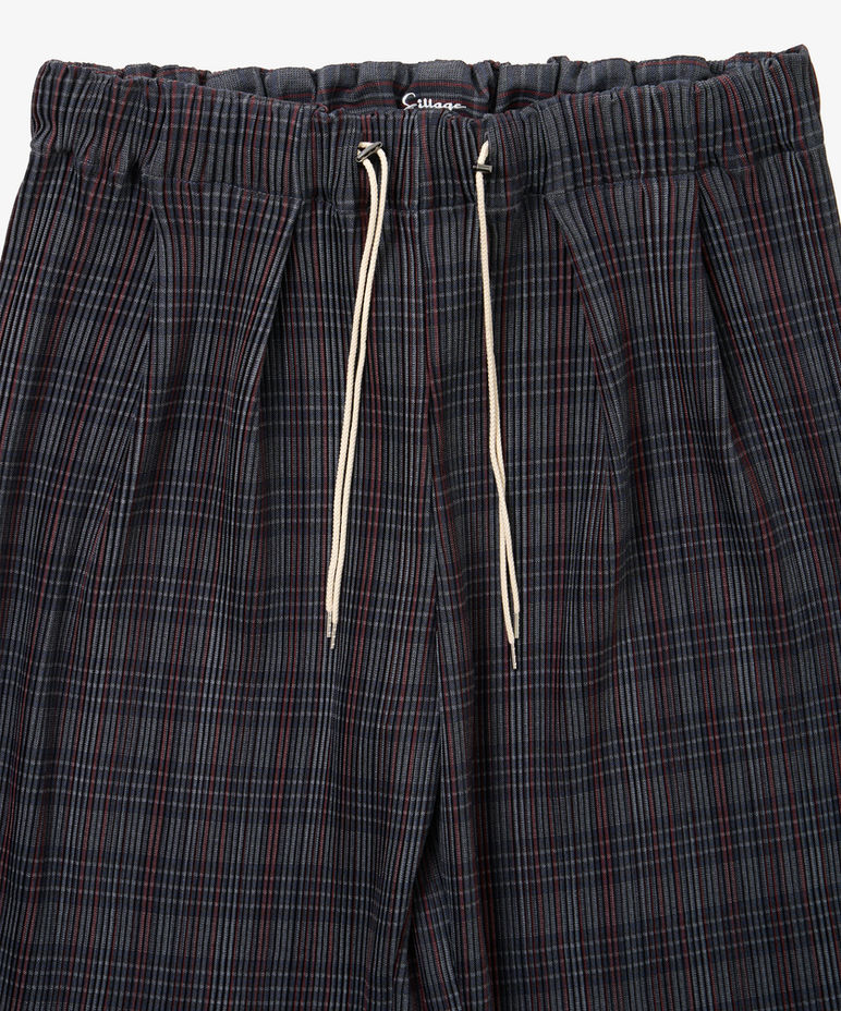 circular pleats pants deadstock watahiko tex navy grey plaid