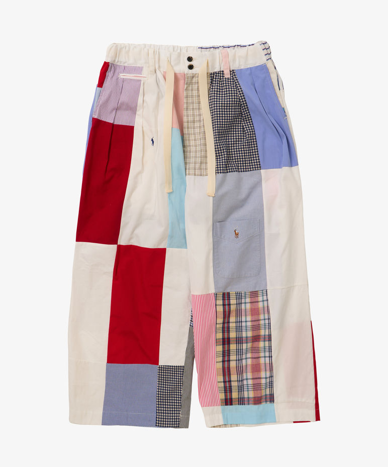 From there, we then had our artisans in Tokyo re-work the patchwork sheets by hand and had them cut, assemble, stitch, and sew the different sections of the sheets together. Afterward, the clothes were then sent to our factory in Okayama for the buttoning process.
