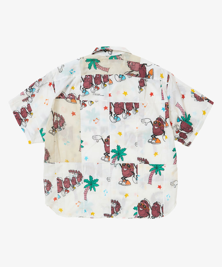 After carefully selecting and sorting vintage bedsheets sourced from the US, we applied our Artisanal Collection process: deconstructing the fabric, cutting it into squares, and reconstructing them through our signature patchwork technique. The outcome is a limited series of open-collar shirts, each featuring a left chest pocket, a wide boxy cropped bodice, voluminous short sleeves, and unique hand-numbering along the collar and interior.