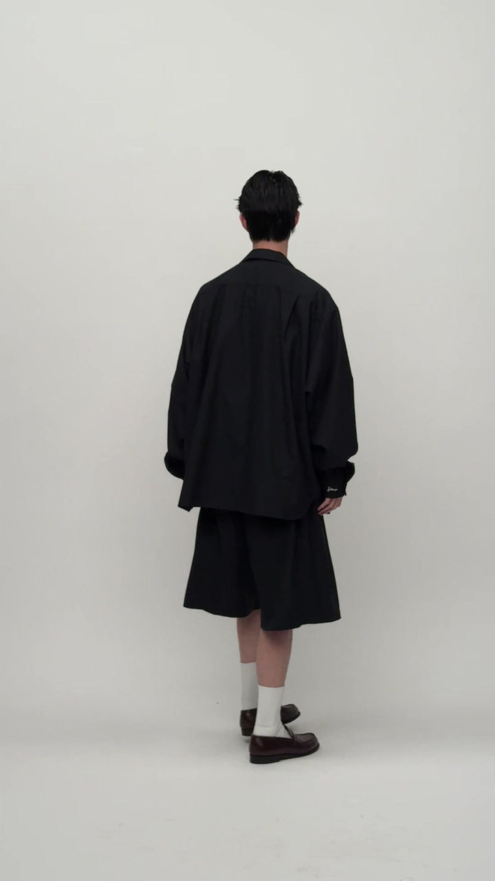 ESSENTIAL コレクションとしてオープンカラーのオーバーシャツ仕様。