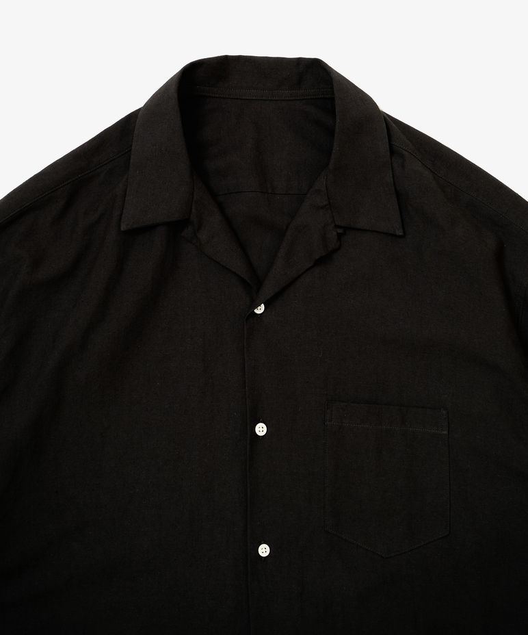 ESSENTIAL コレクションとしてオープンカラーのオーバーシャツ仕様。