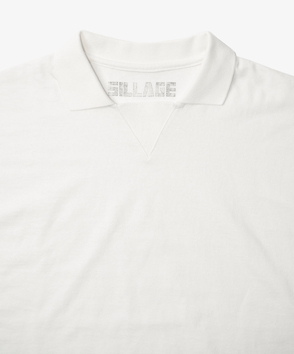 It features an ecru-colored open-end yarn for a dry-touch feel, designed with a ribbed collar to provide an elegant appearance.