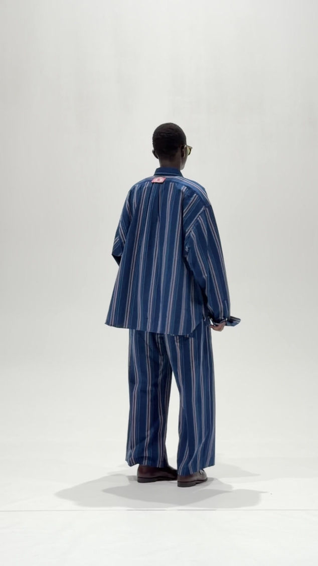 Crafted from deadstock Bingo Kasuri, a historic indigo dyed cotton woven in Fukuyama, Hiroshima since the late Edo period. Known for its soft hand, durability, and quiet geometric patterns such as igeta lattice, stripes, and checks, Bingo Kasuri reflects over 150 years of Japanese textile craftsmanship. A timeless fabric where tradition meets a more contemporary expression.